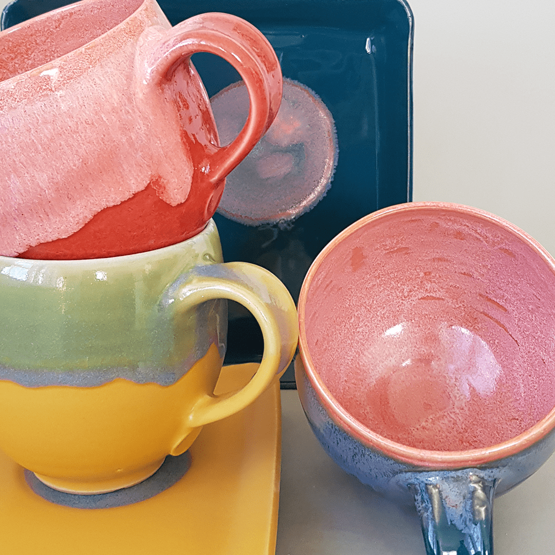 Bunt glasierte Keramik für den Alltag – handgefertigt, spülmaschinenfest und mikrowellengeeignet