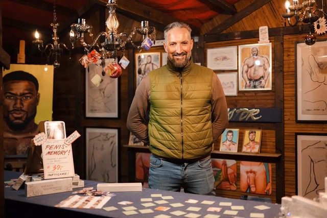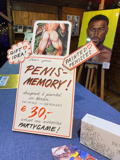 Am Stand von Paul Astor aus Berlin findest Du nicht nur sein legendäres gemaltes Penis-Memospiel „SWEET MEMORIES“ sondern auch sexy Zeichnungen und Gemälde von Männern, die Dein Herz höher schlagen lassen