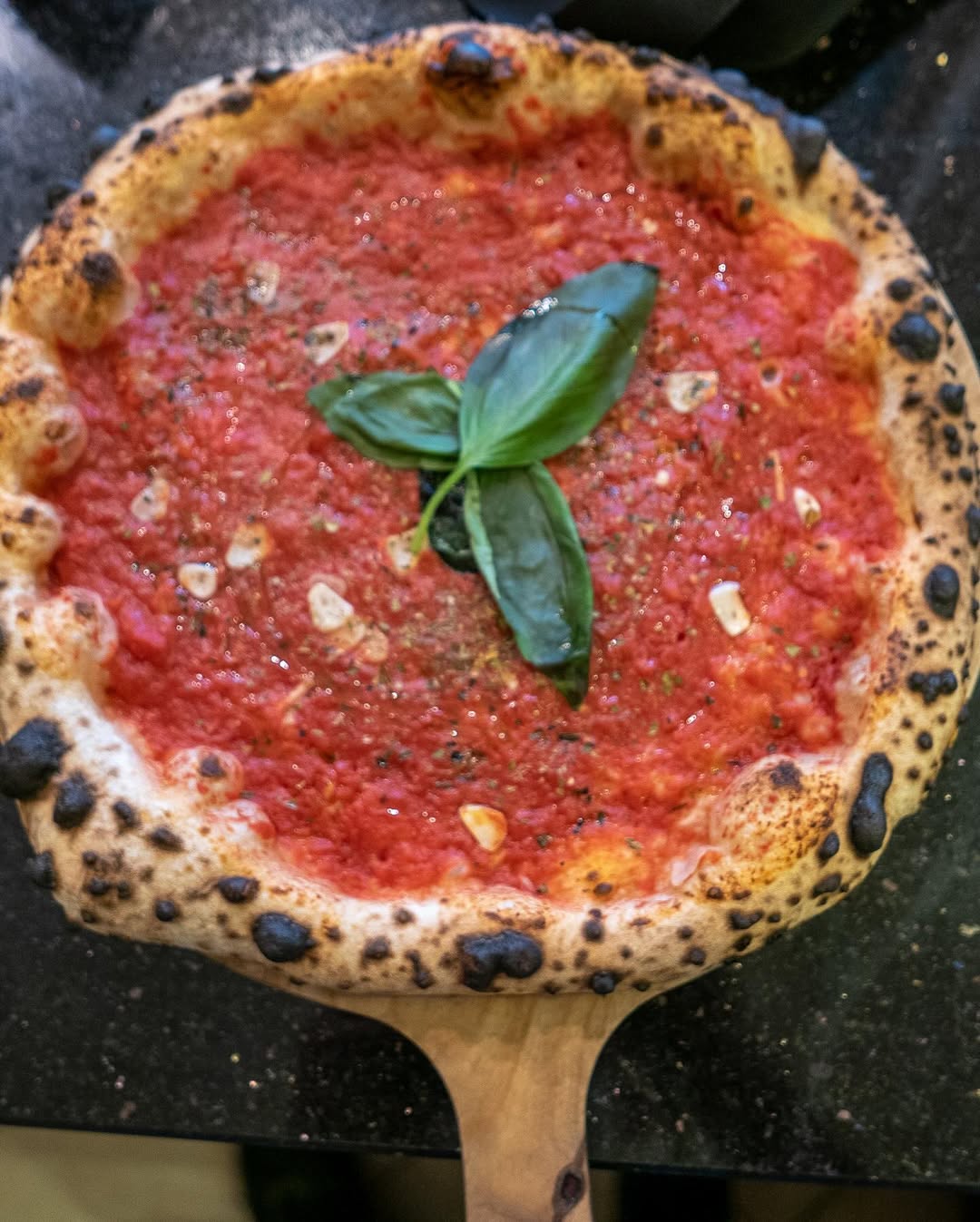 Hier trifft italienisches Traditionshandwerk auf Berliner Lockerheit: Der Teig ruht lange, der Belag sitzt perfekt und der Ofen sorgt für den charakteristischen knusprig-luftigen Rand.